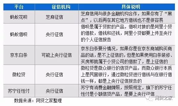除银行系统之外,目前京东白条、蚂蚁借呗、苏宁任性付、微粒贷、百度金融等常见产品都已经接入了征信系统。
