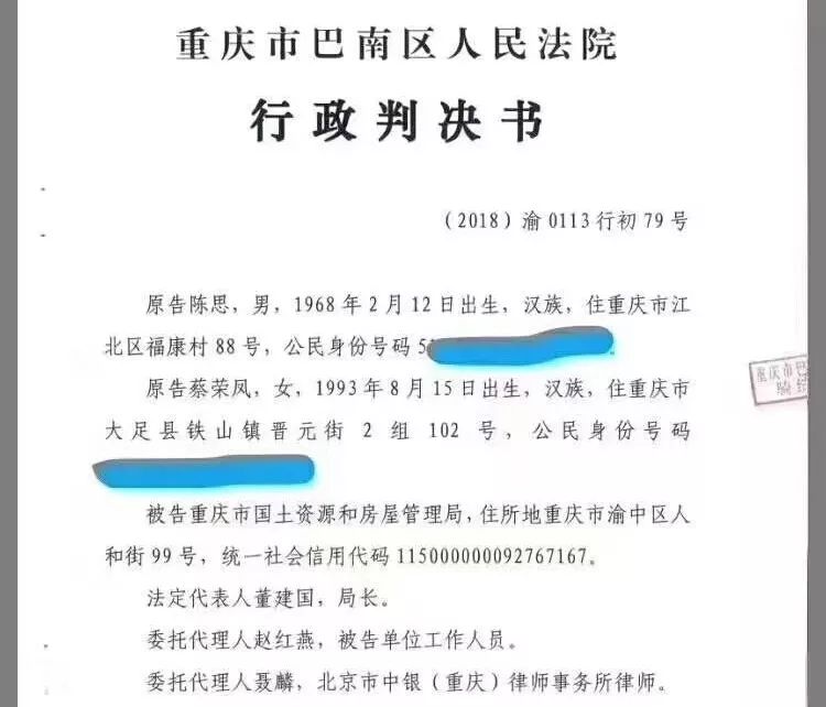 ▌附:重庆市巴南区人民法院的一审《行政判决书》全文