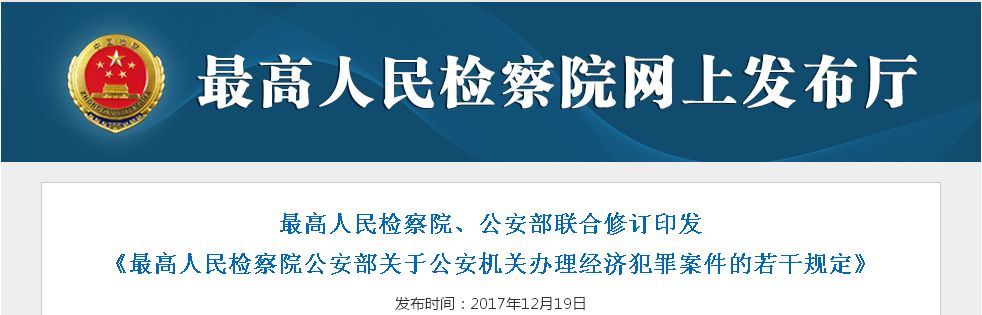 最高人民检察院公安部 关于公安机关办理经济犯罪案件的若干规定 2018年1月1日起施行